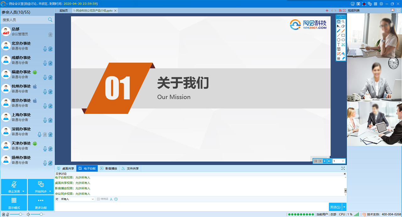 網(wǎng)會科技,使用智能網(wǎng)絡為客戶提供安全可靠、流暢清晰的全面視頻會議服務,給客戶更好的體驗,網(wǎng)會使團隊更容易協(xié)作、更容易溝通,歡迎咨詢:400-004-0268。